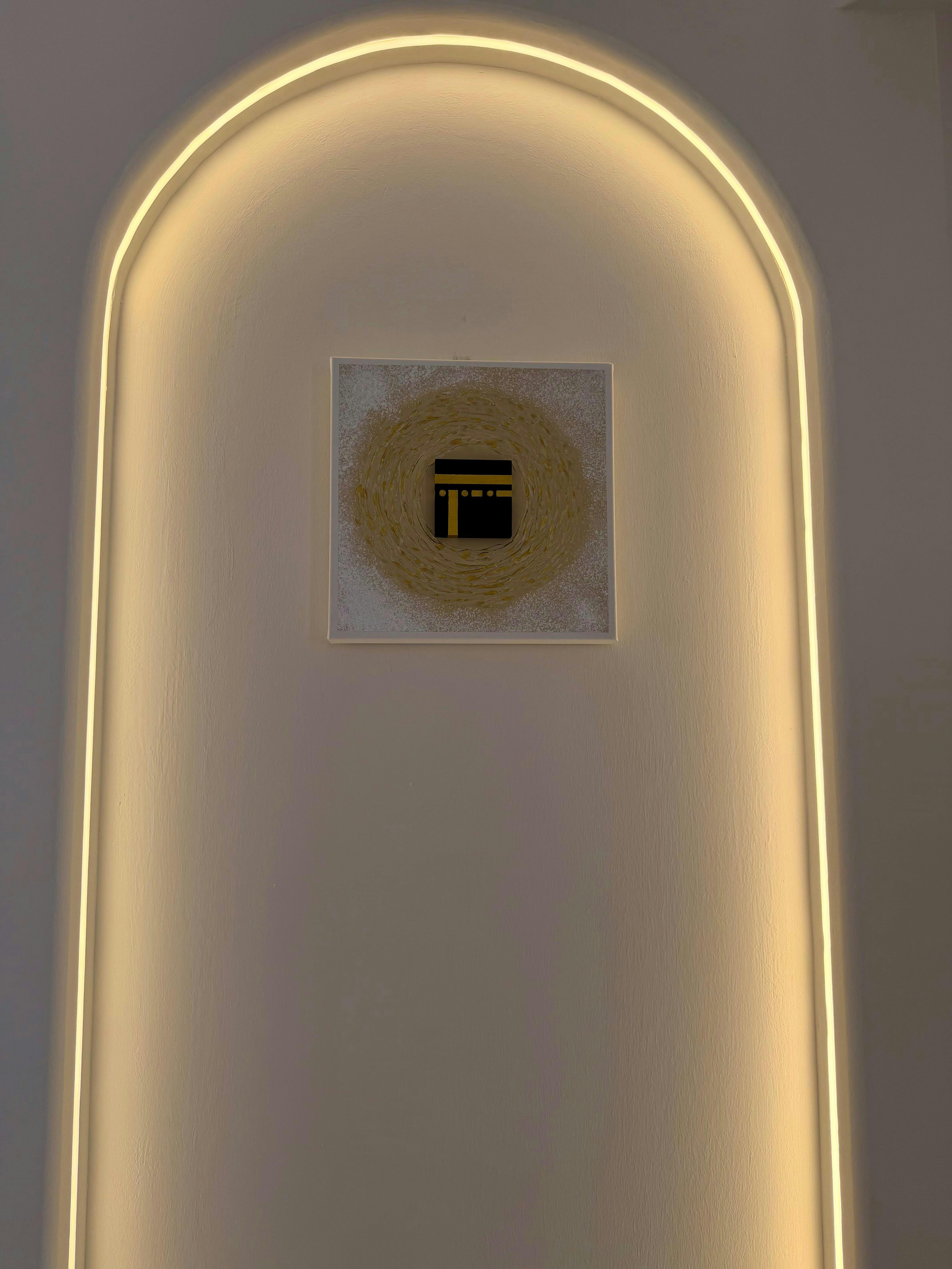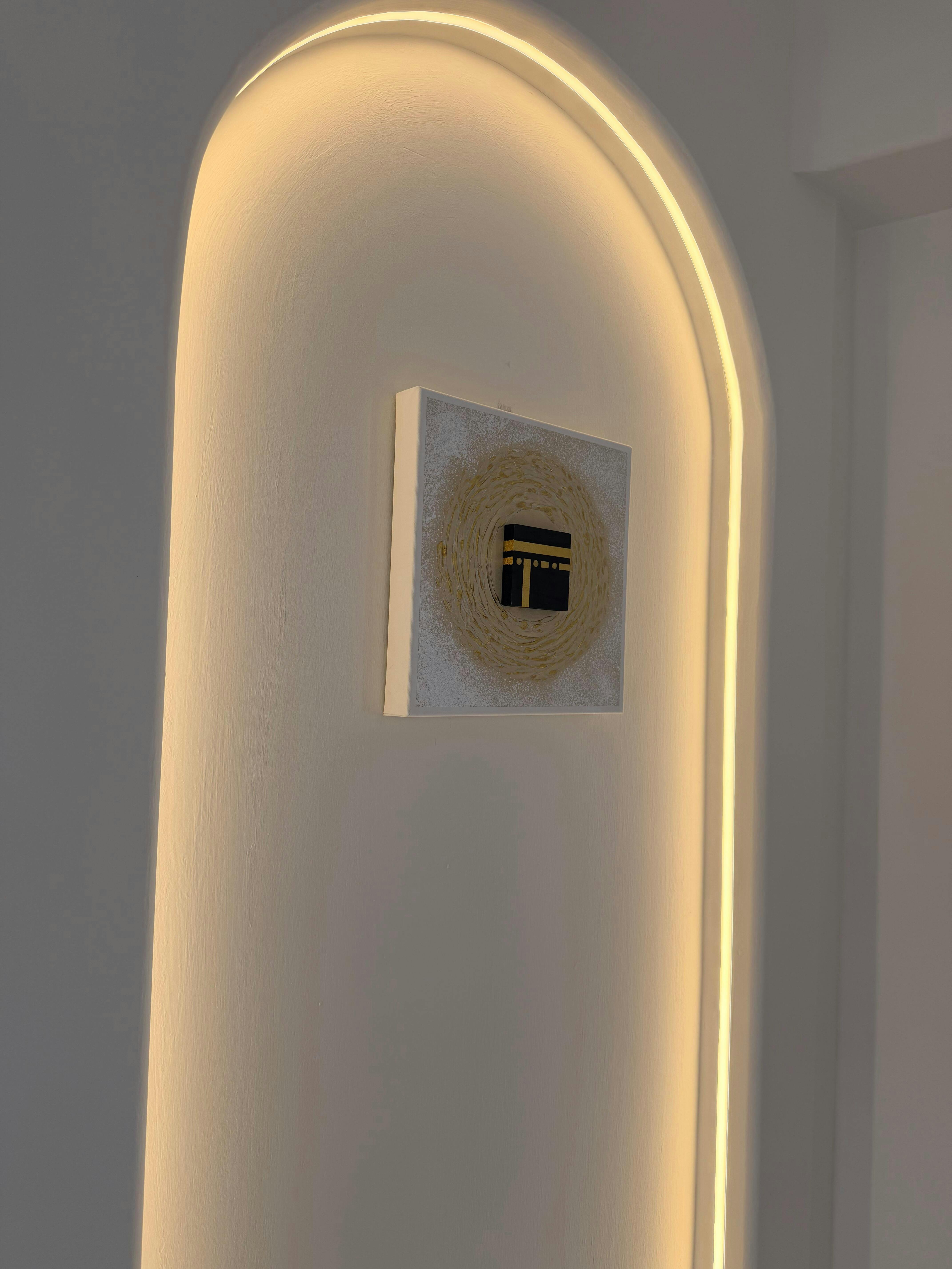 Encircle is a poetic interpretation of unity, movement, and divine connection — a radiant tribute to the Kaaba as the spiritual heart of every believer. Encircled by handcrafted golden ripples, the Kaaba sits at the centre like a still point in an eternal flow, symbolising tawaf, devotion, and the unending rhythm of faith.
